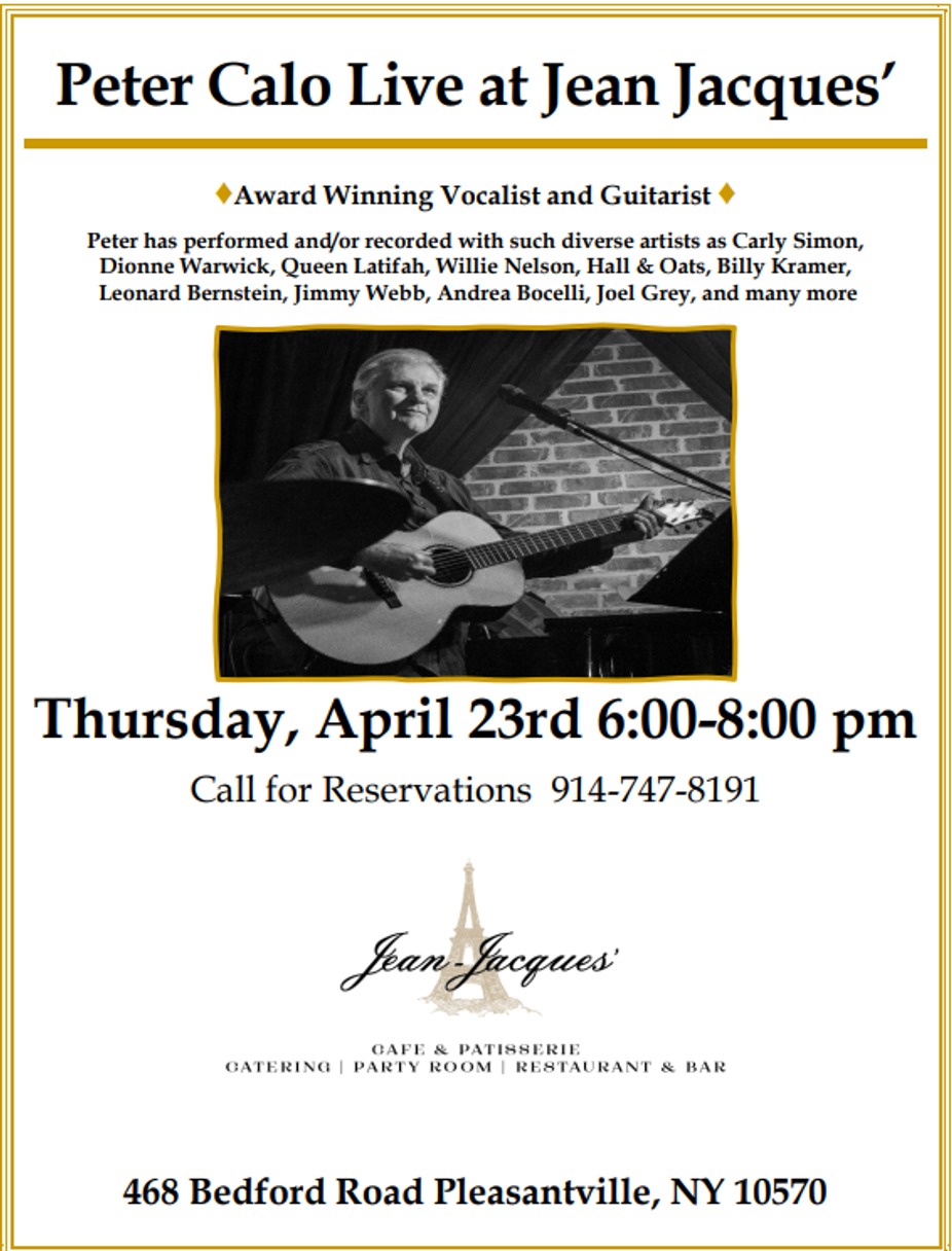 6pm-8pmPeter Calo Live at Jean Jacques’Thursday, April 23rd, 2026